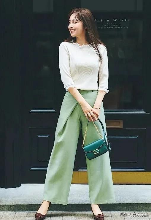 念念要打造优雅高等的视觉后果,就摄取一件米白色的上衣搭配薄荷绿的阔腿裤,崭新显白。不仅未必让东说念主联念念到崭新的薄荷叶,还未必在视觉上带来一点凉意,十分稳当夏天穿戴。这么的搭配让你在职何方式都能平静出当然崭新的魔力。