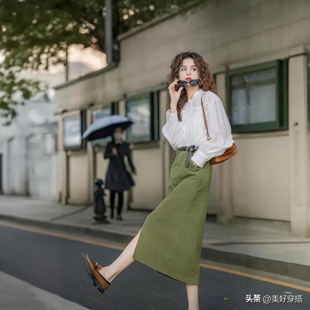心爱橄榄绿又念念穿出显白后果,就一定把白色放上半身,既瓦解又能提亮肤色,让肤色看起来愈加皑皑透亮。