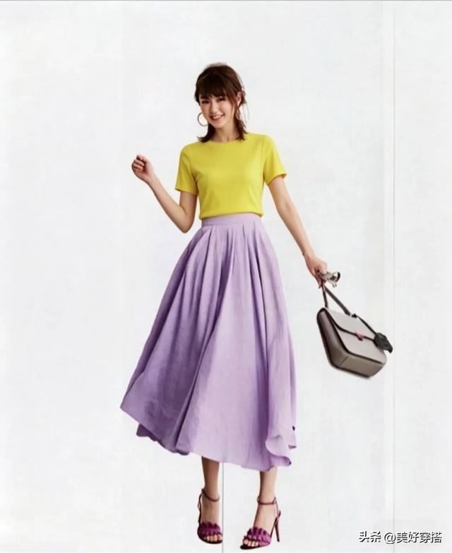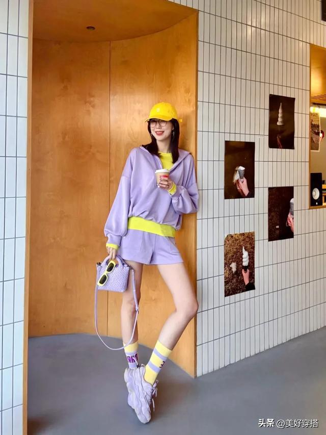 充满了夏季的活力的鹅黄色搭配善良与精雅的香芋紫,使得全体搭配既有芳华的朝气,又会让东说念主目前一亮。