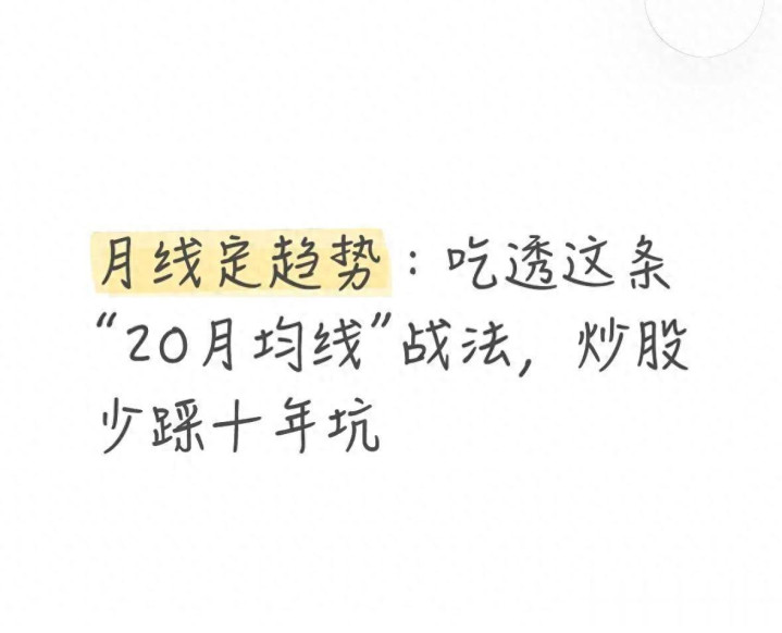 炒股这件事,最难的不是工夫,而是见地感。20月均线战法,不需要你天天盯盘,也不靠音问博弈,只须认清趋势、遵守规律,就能避让绝大无数陷坑,把捏住竟然属于普通投资者的大行情。