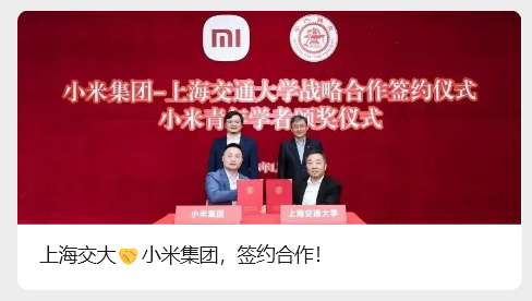 IT之家从合作公告获悉,上海交通大学种植发展基金会与小米公益基金会在公益鸿沟追究相助,自 2020 年小米公益基金会与交大基金会联袂开荒“小米奖助学金”、2022 年共同开动“小米后生学者”面容以来,已构建起一个从奖学到奖教的全面东谈主才相沿体系。