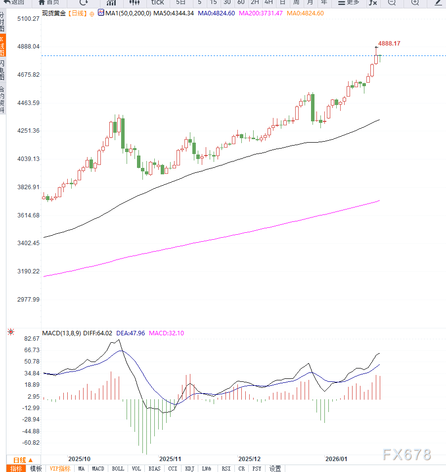 从波段结构看,自4530好意思元低点至4889好意思元高点的回升流程中,23.6%斐波那契回撤位位于4800好意思元近邻,为第全部因循;38.2%回撤位位于4750好意思元近邻,若该位置失守,可能加大交流幅度。