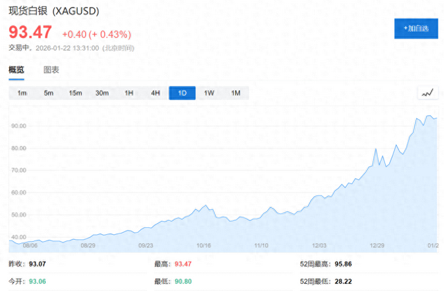 与黄金的强势单边高潮不同,白银阛阓波动加重。COMEX白银期货周二收盘跌1.78%,报92.95好意思元/盎司,但在盘中交游中一度涉及历史高点。