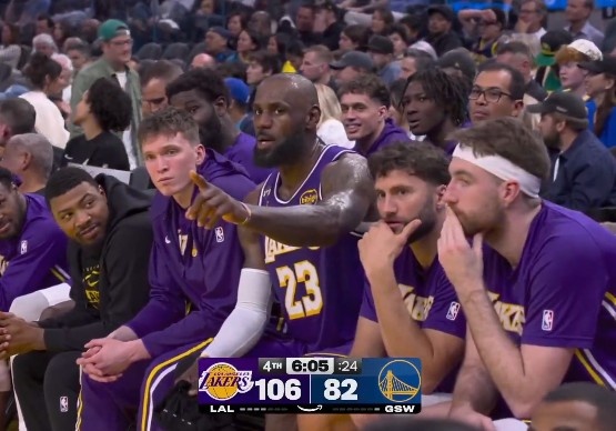 GIF——詹姆斯致场边球迷:“放轻松澳门信誉网赌城,澳门十大信誉网络赌城好顺眼球。”(“You need to relax. Watch the game.”)
