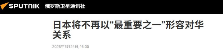 俄罗斯卫星通信社2026年3月24日,日本将不再以“最重要之一”描画对华干系
