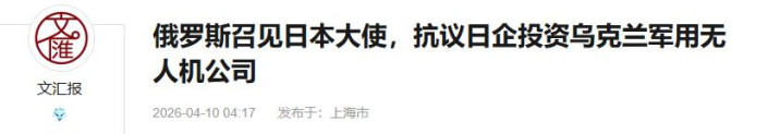 文请教2026-04-10俄罗斯召见日本大使,抗议日企投资乌克兰军用无东谈主机公司