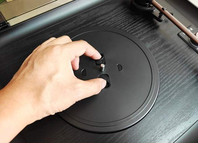 包装里附带了阐明书、电源适配器,还有一个45rpm唱片适配器——若是你有7英寸的小唱片,会用到这个。