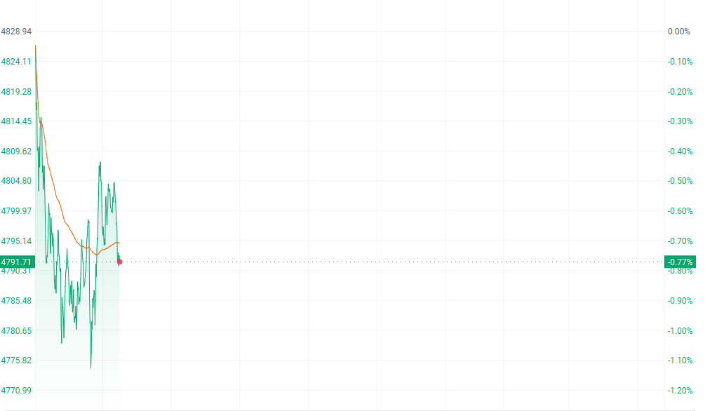截止发稿,海外金价跌0.77%,报4791.71好意思元。