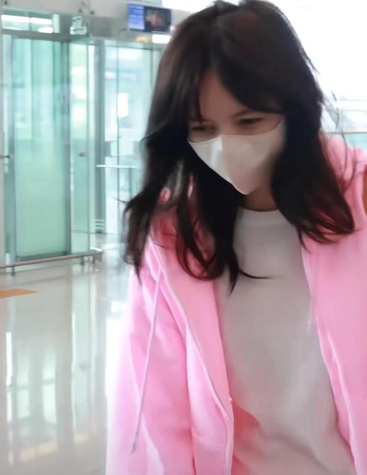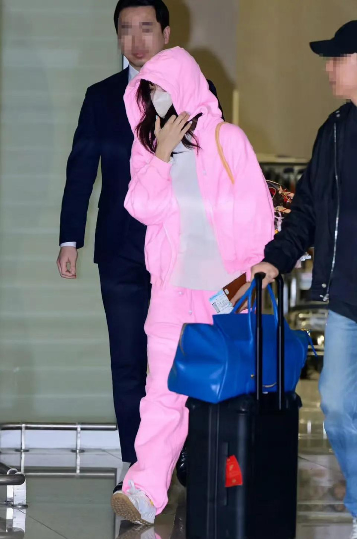 她一手拿着护照,一手拉着行李箱,看起来像是没睡醒的形势,臆想最近行程相比忙,有点太累了。