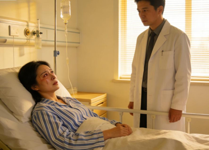 她的眼睛死死盯着天花板,瞳孔因为剧痛而剧烈收缩。