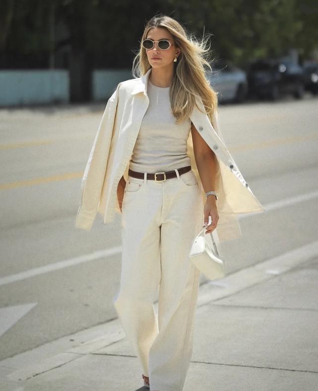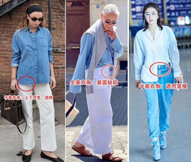 而是应该学会“塞”,比如,当衣服宽松衬衫时,塞一边的衣角,既不会在腰腹部有很大的饱读包,也能借助一边掉落的衣角遮住肉肉。固然了,还能与下装的阔腿裤酿成松紧对比,更成心于塑造出好的体态比例。