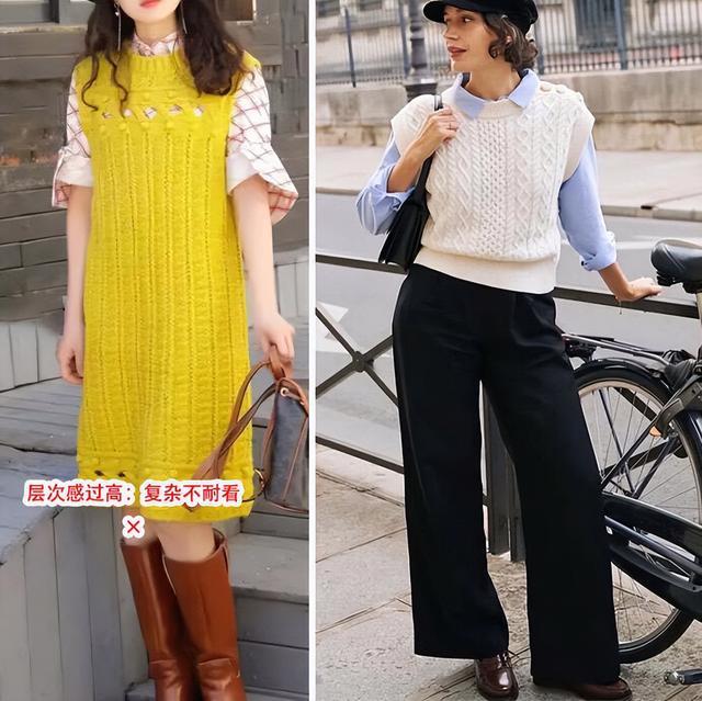 另外,穿衣的线索也会影响中年女性是否能领有高档感。即使都在说,穿衣有线索更经得起技巧的谈判。但并不等于像↓图中这么各式色复杂叠穿,再加上镂空的蓄意,只会让东谈主认为你是在特意扮嫩,并无高档大气之感。