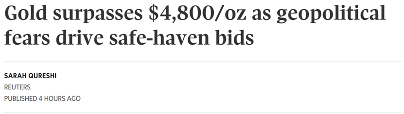 《环球邮报》发文称,公共地缘政事局势鼓吹下,黄金价钱初次顽固每盎司4800好意思元,铂金创记载高位,钯金微跌。白银价钱一度涉及历史高点。