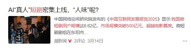 除此以外,AI内容的快速发展,也给电视剧带来了冲击。